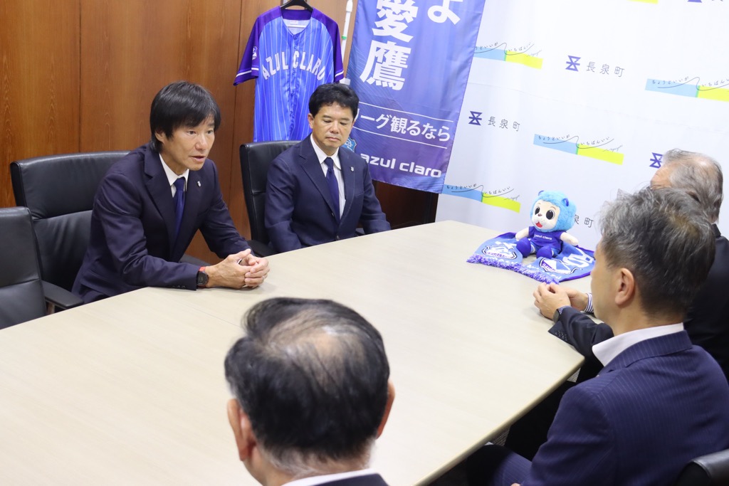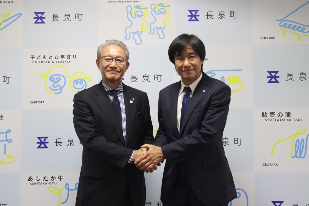 町はアスルクラロ様と2018年にパートナーシップ協定を結んでいただき、鮎壺公園づくりに園児との植樹体験や、ベンチの色塗り、またサッカー遊びなどホームタウン活動として地域に大変貢献いただいております。
