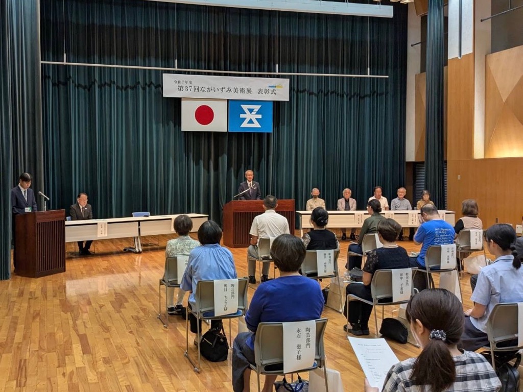 「第37回ながいずみ美術展」の最終日、表彰式が執り行われました。今回、日本画18点、洋画40点、彫刻31点、陶芸37点のご応募をいただき、質の高さを感じております。