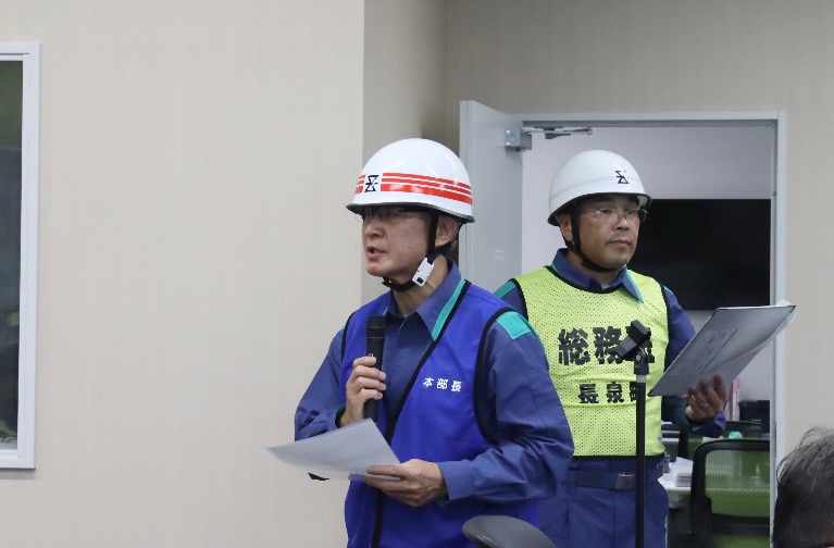 総合防災訓練は、昨年まで8月第4日曜日に実施しておりましたが異常気象による熱中症等を考慮し、10月第3日曜日に変更し、はじめての訓練となりました。冷秋のさわやかな季節の中で、充実した訓練を実施することができました。特に危惧しています南海トラフ巨大地震に関し、国の地震調査研究推進本部が発表した「南海トラフの地震活動の長期評価」によりますと、今後30年間に発生する確率は、60~90%程度以上に引き上げられ、依然として、非常に切迫している状況にあります。自治体としての「公助」には限界もあります。「自助」「共助」による皆さんの力が大変重要なものとなりますので、ぜひ、日常的な備えをお願いします。