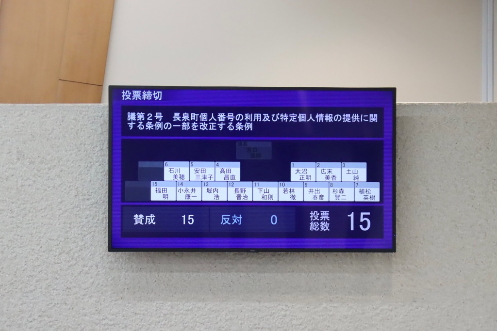 町議会本会議において、上程議案のうち、「長泉町個人番号の利用及び特定個人情報の提供に関する条例の一部を改正する条例」、「長泉町スポーツ推進審議会条例の一部を改正する条例」、「長泉町消防団員等公務災害補償条例の一部を改正する条例」の3本について質疑、討論もなく原案どおり可決していただきました。また、代表監査委員による令和6年度歳入歳出決算の審査報告が行われました。その他の補正予算や決算の認定議案につきましては、各常任委員会へ審査が付託されました。