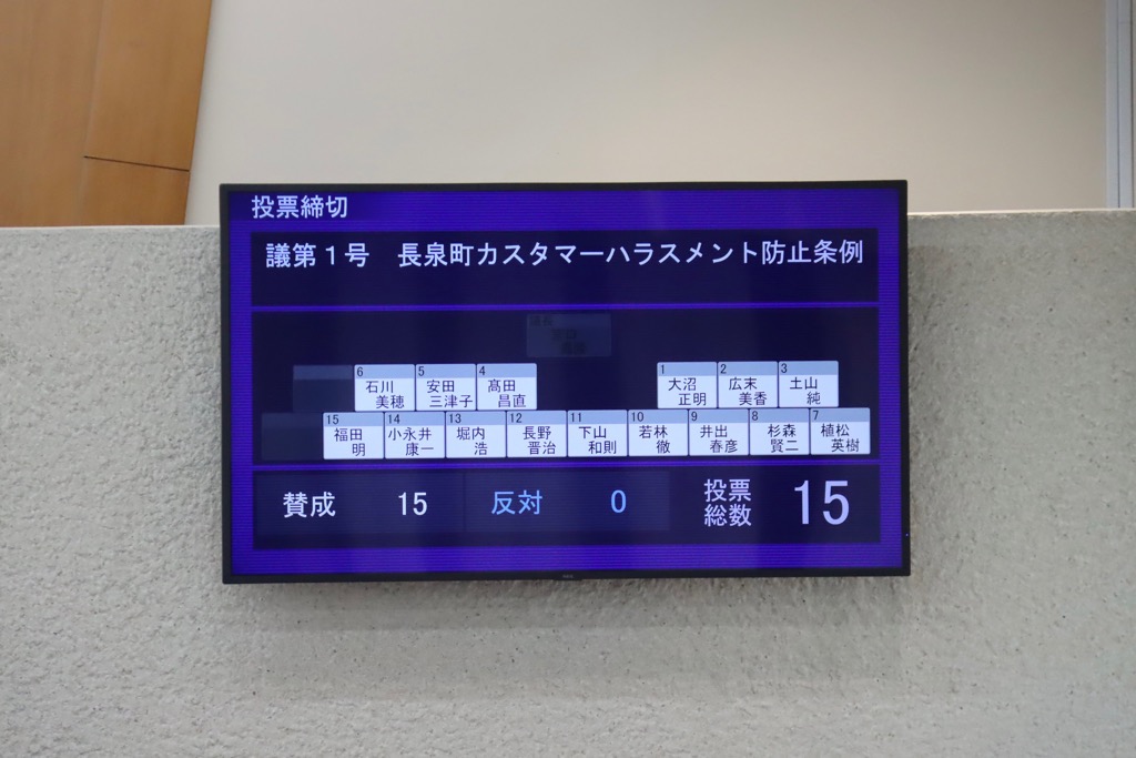 「社会通念上許容される範囲を超える著しい迷惑行為で、就業環境を害する」カスハラを町全体で防止に取り組むための条例で、他の市町にも広がることを期待し、先陣を切り、条例制定を目指しました。企業や町民と連携し、カスハラ抑止を進めますので、御協力よろしくお願いします。