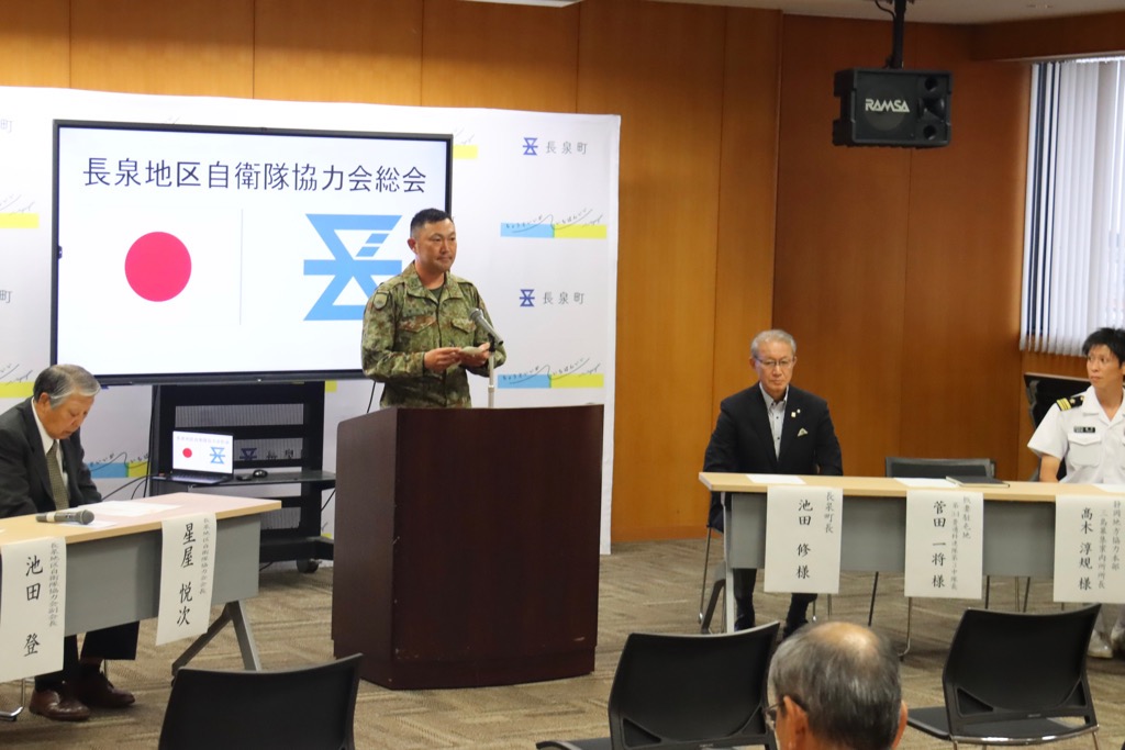 令和7年度長泉地区自衛隊協力会総会に出席いたしました。近年、巨大地震や豪雨による土砂災害から多くの生命や財産を守る自衛隊の力は大変心強く、協力会の活動が必要不可欠であります。本日は、陸上自衛隊第34普通科連隊長代理の鈴木様と自衛隊静岡地方協力本部三島募集案内所長の高木様からも挨拶がございました。「自衛隊員の募集状況は厳しいものの、一方で隊員の処遇改善も向上し、災害派遣や世界情勢を見て、自分も役に立ちたいと言う若者も増加傾向にあり大変心強い」という報告も頂けました。引き続き協力会の発展をお祈り申し上げます。