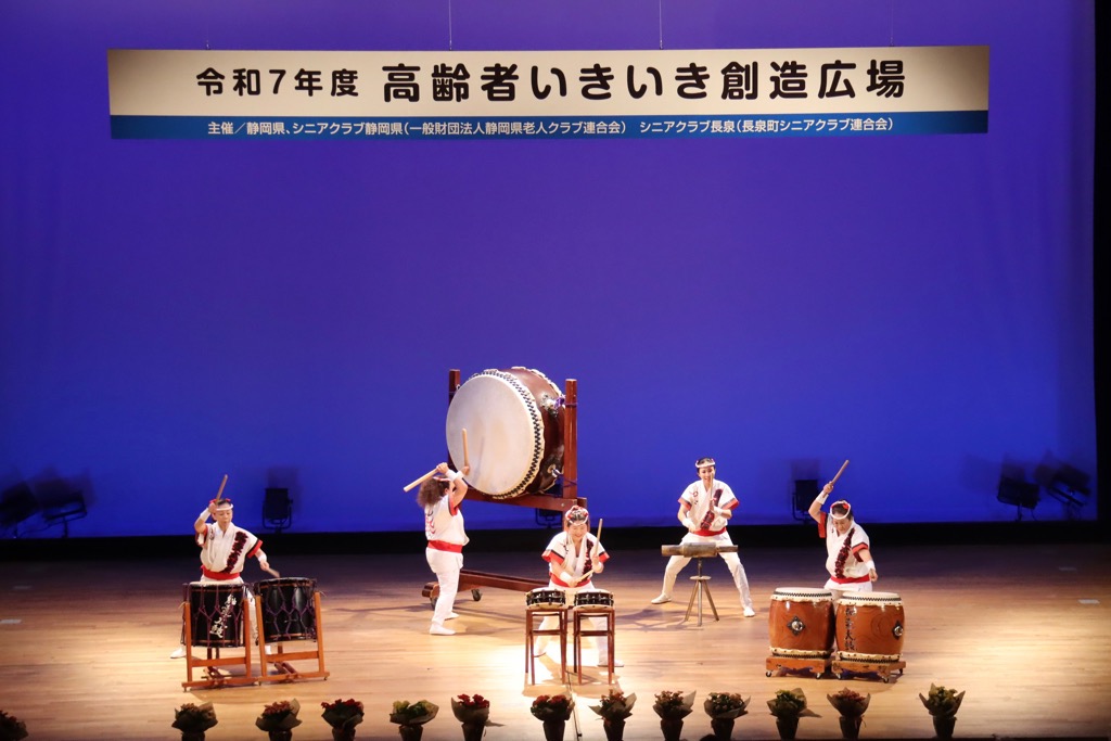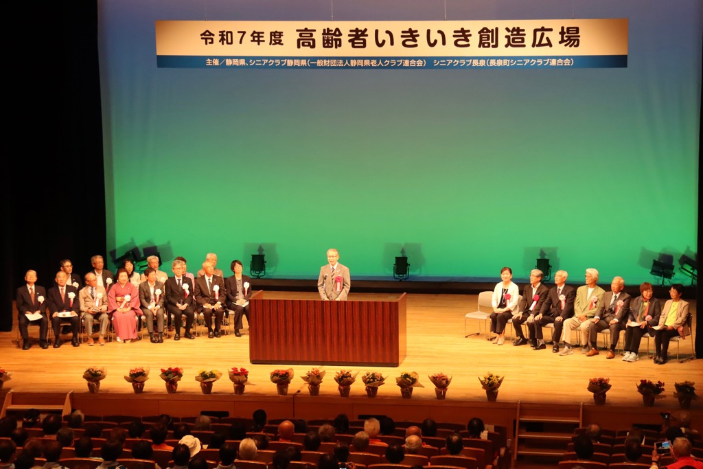 静岡県シニアクラブ連合会に参加している静岡県内の各シニアクラブ連合会が、年に1回西部・中部・東部を持ち回りで開催される一大イベント「高齢者いきいき創造広場」が長泉町文化センターを会場に開催されました。この広場では、県内各地のシニアクラブの芸能、文化活動等の成果発表及び高齢者が楽しめる講演会を開催することで、広く県民とのふれあい、高齢者の生きがいづくり、社会参加を促進することを目的とされています。これからも末永くお元気で楽しい日々を送って欲しいと思います。