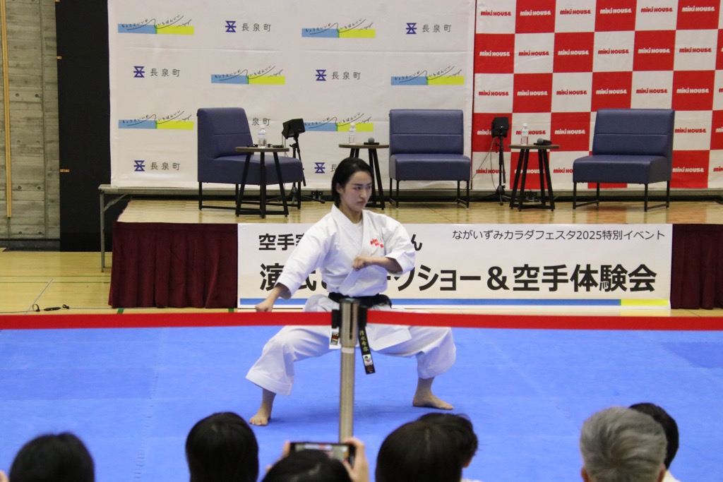 ながいずみカラダフェスタ2025特別イベントとして、東京2020オリンピック空手女子形の銀メダリストである空手家・清水希容さん(ミキハウス)をウェルピアながいずみにお招きし、演武&トークショー&空手体験会が開催されました。