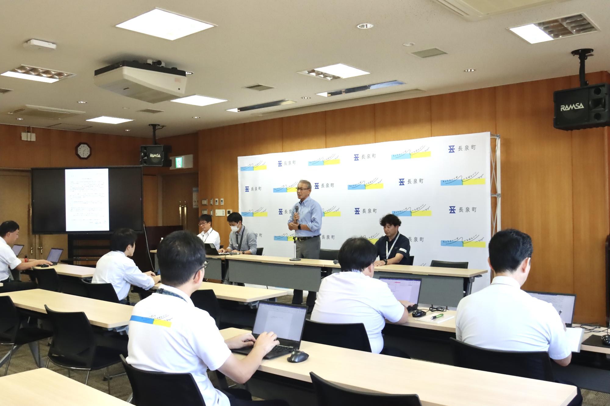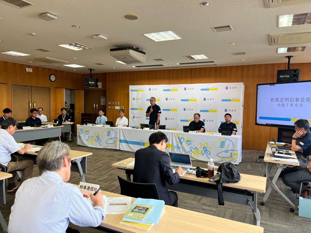 町では、情報発進力を強化し、新聞・テレビ等の報道機会の拡大を図ることで、みなさまへの情報提供の機会を増やすことを目的として年4回(3、6、9、11月)定例記者会見を開催しています。今回の会見では、9月町議会定例会へ上程する一般会計補正予算(案)などの議案をはじめ、長泉町カスタマーハラスメント防止条例(案)、第30回長泉町産業祭の開催など15件の町政トピックスについて情報提供いたしました。