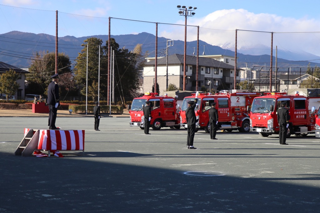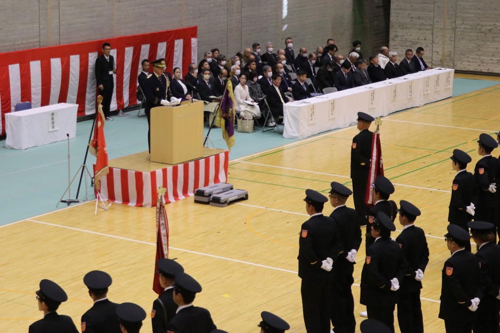 令和8年長泉町消防出初式がウェルピアながいずみで挙行されました。消防団員の皆様には、町民の安全・安心の確保のために日夜、献身的なご尽力を賜り深く敬意を表するとともに、ご家族の皆様方に厚く御礼申し上げます。昨年は、岩手県の林野火災をはじめ、牧之原市の竜巻、また全国各地での豪雨など災害リスクが高くなっています。引き続き、地域防災力の要としてお力添えをいただくようお願い申しあげました。