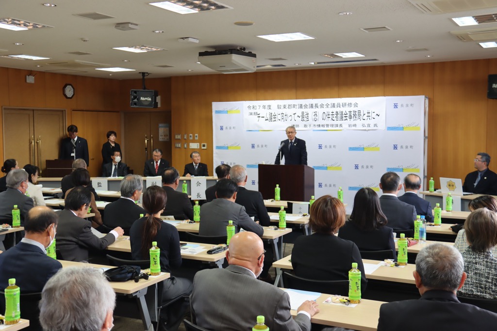 令和7年度ながいずみ観光交流協会総会が開催され、挨拶をさせて戴きました。 先月九日には、皆さんも待ちかねていた鮎壺公園が開園し、協会には公園内の交流施設「鮎壺テラス」の管理運営に御協力いただいております。 また、先日開催された「長泉ジオの日」をはじめ、旧ヴァンジ彫刻庭園美術館の活用モデルとして、園内のバラ剪定や池の清掃などの活動、ハロウィンイベントを開催いただくなど、ご尽力をいただいており、引き続き、町と連携しながら観光振興と交流による活気あるまちづくりに、お力添えを賜りたいと存じます。