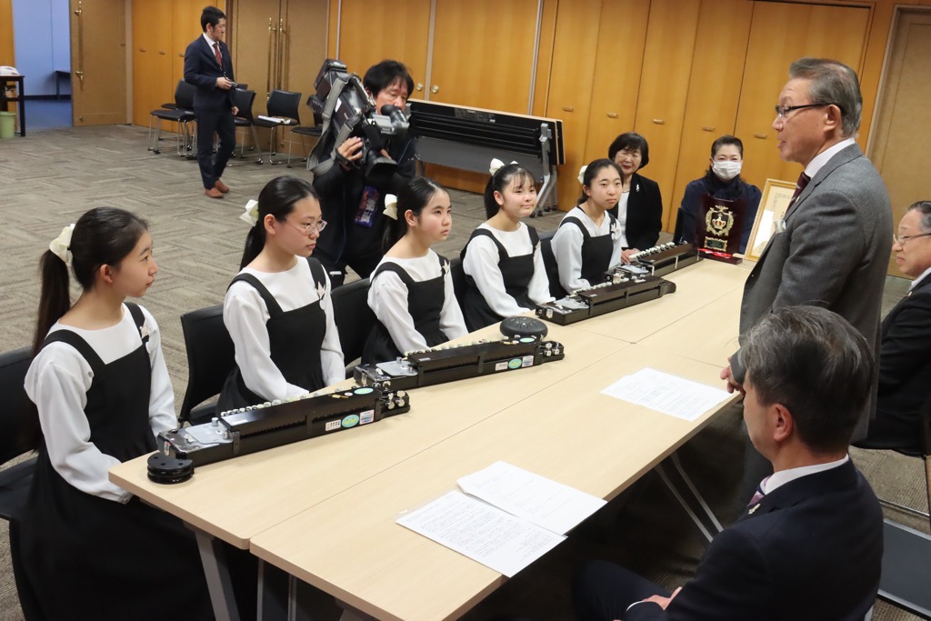 この度、大正琴アンサンブルことふれんどの“ジュニアアンサンブル・こどもクラブ”所属の5人が、『ながさきピース文化祭2025(第40回国民文化祭・第25回全国障害者芸術・文化祭)』にて開催の「令和7年全国子供大正琴コンクール最終選考会」に出場し、「文部科学大臣賞」を受賞され報告に来てくださいました。