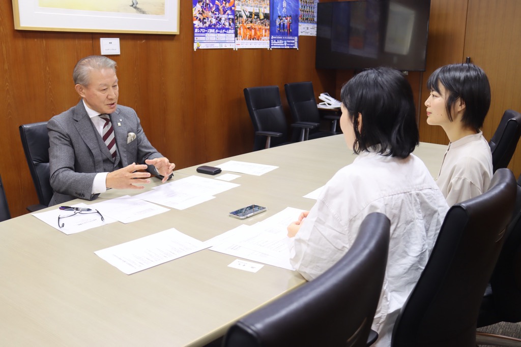 東レアローズ静岡の皆さまが来庁され、阿部監督から「SV.LEAGEが終了し、怪我による離脱選手も重なり、第8位という非常に悔しい結果でした」と報告をいただきました。また、長きにわたりチームを引っ張ってこられた米山裕太選手の引退報告もありました。今後は、引き続きスタッフとして支えていただけるようです。最後に山田大貴選手が、来季に向けて力強い意気込みも語ってくれました。みなさん!引き続き東レアローズの応援よろしくお願いします。