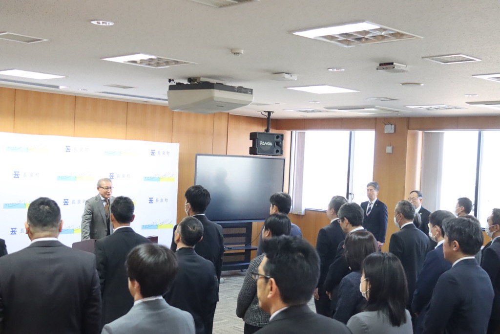 令和7年度教職員着任式が役場庁舎大会議室で開催され、出席いたしました。新しく着任される8名の新規採用の教諭を含む25名の先生方が町内の小中学校に転入されました。