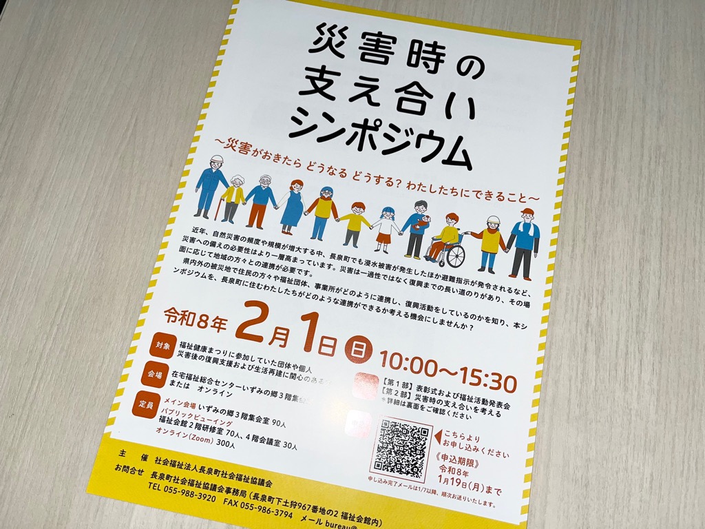 また、長年親しまれた「長泉町福祉健康まつり」から装い新たに「災害時の支え合いシンポジウム」が開催され、地域における「共助」の力や重要性について深く学び合う機会を設けていただいたことに感謝を申し上げるとともに、今後も変わらぬお力添えをお願いさせていただきました。
