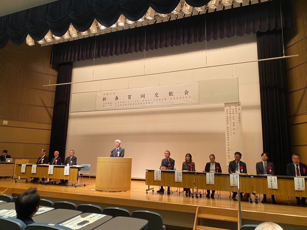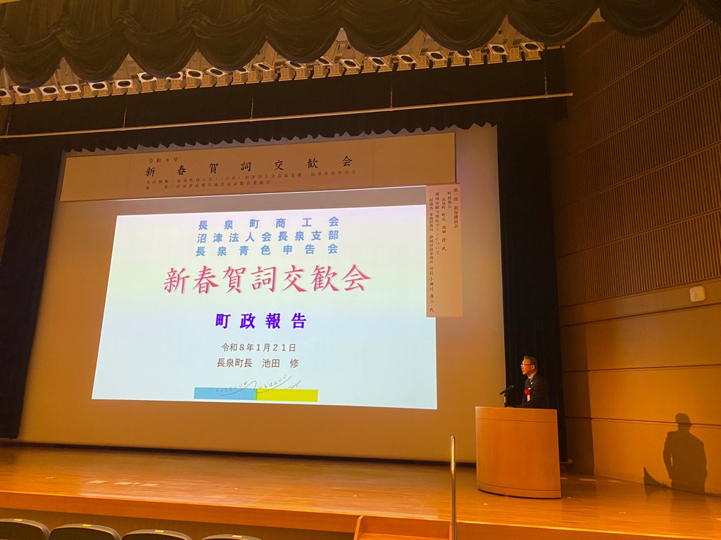 長泉町商工会、(公社)沼津法人会、長泉青色申告会共同開催の「令和8年新春賀詞交歓会」が東レ総合研修センターで開催され、町政報告をさせていただきました。当町の財政状況は社会情勢等の変化を受け、大変厳しい局面を迎えています。特にコロナ禍に続き、この度の「おこめ券」を代表する「重点支援地方交付金」が財政力指数に応じて分配され、他市町と同様のサービスを提供するためには、自己財源を捻出せざるを得ないということです。これは単に一例に過ぎず、国の政策による事業が同様の措置がとられます。今、行動しなければ手遅れになることから、聖域なき“行財政変革”を決意し、この場をお借りして、皆様のご理解ご協力を切にお願い申し上げました。