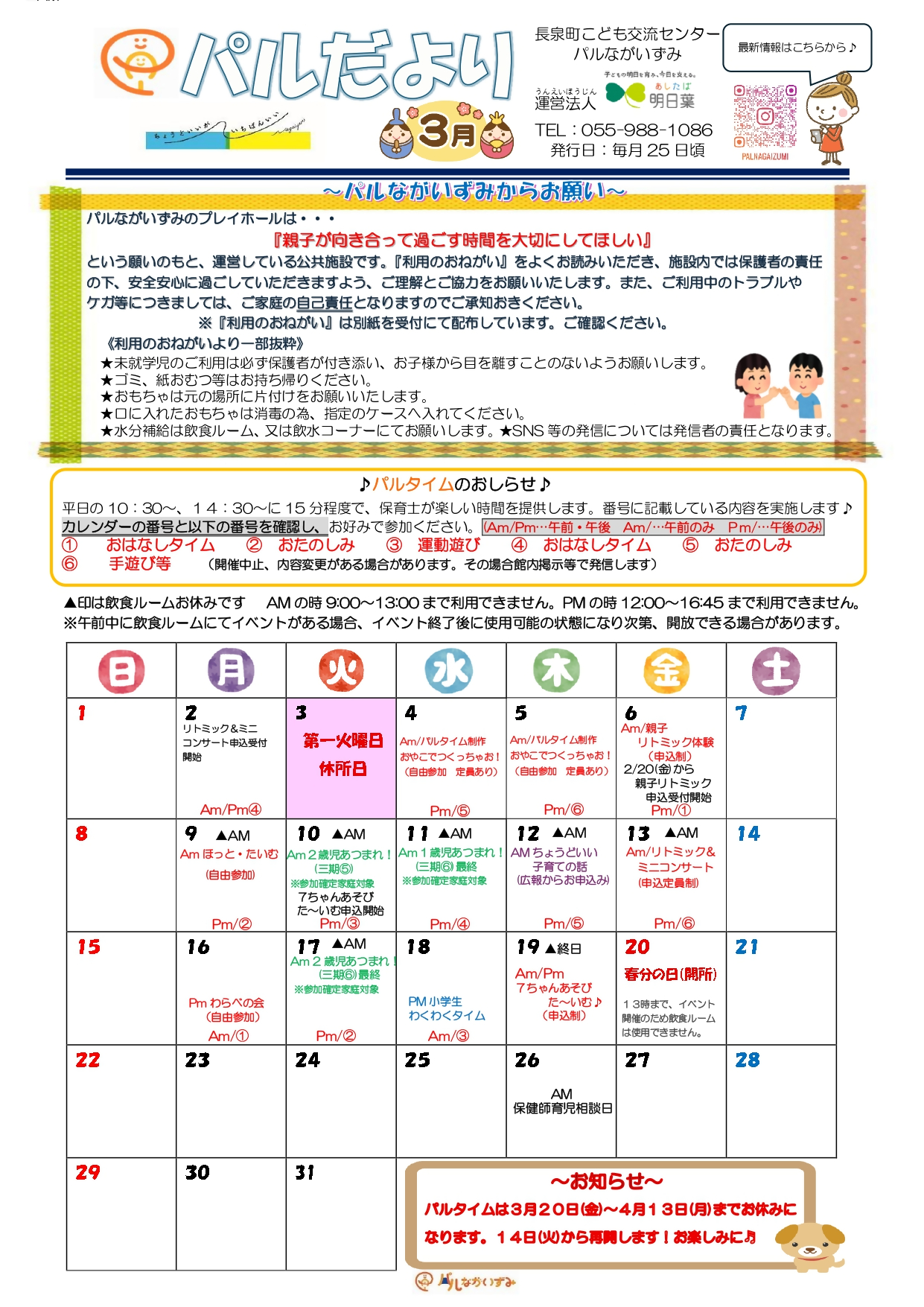 パルだよりと近日中に行う予定のイベントのご案内を掲載しています。