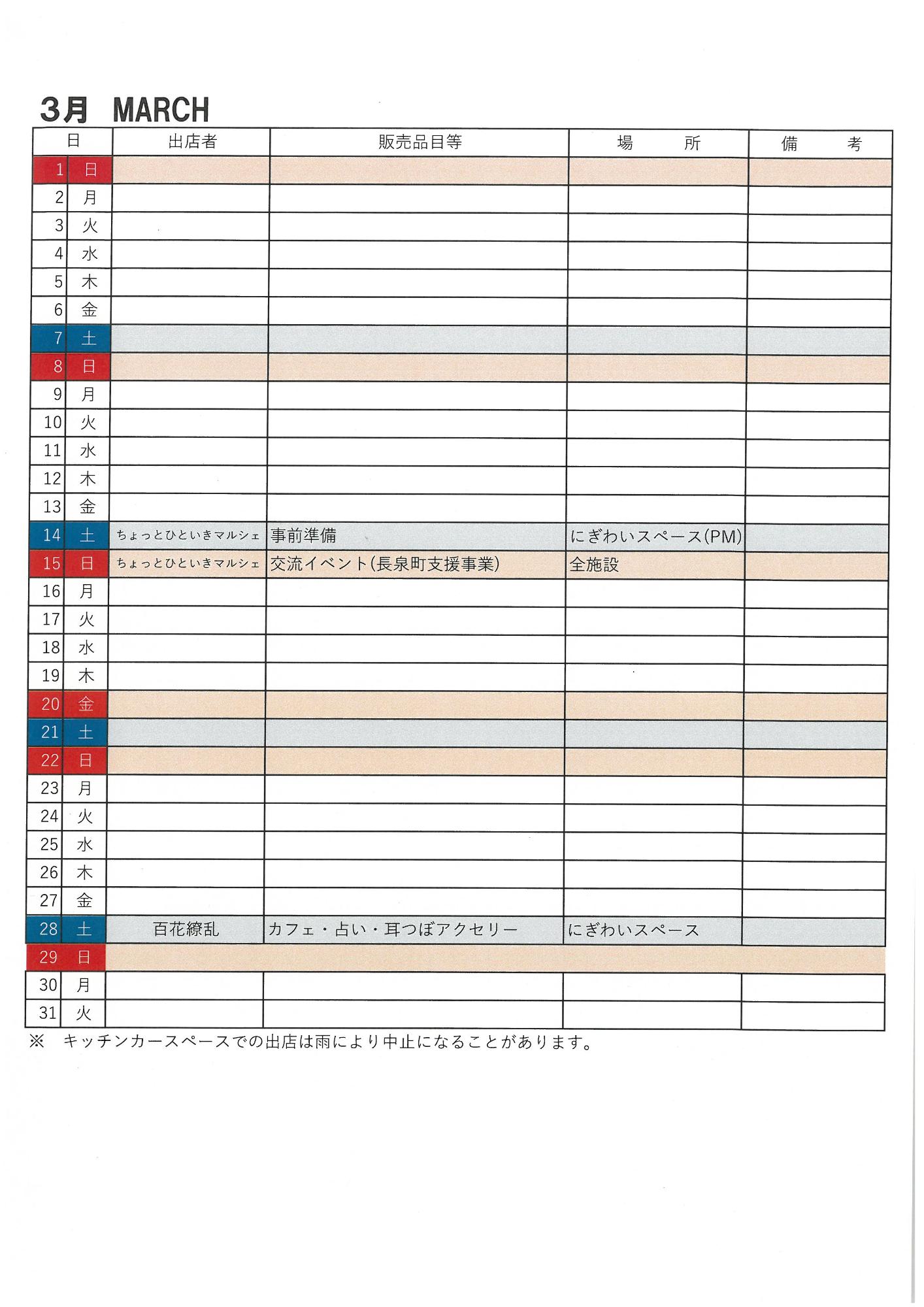 令和8年2月・3月 鮎壺公園 キッチンカー出店等の予定
