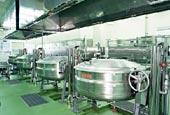 4基の蒸気回転釜で、煮物、汁物、炒め物、茹で物を調理します。