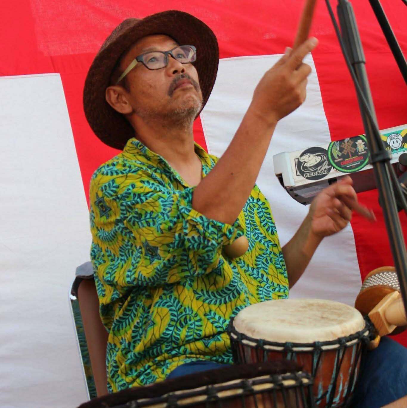 10代の頃音楽を始め、多数のバンドを歴て、ブルースに出会う。20代の頃黒人音楽に傾倒し、アフリカンの楽器であるジャンベを始める。多くの方々とセッションを繰り返すうちに2013年よりハンドパンを始め、以降日本にハンドパンを普及させるためにライブやワークショップを行っています。