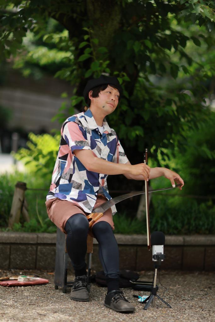 世界的にも数少ない「のこぎり演奏家」として大道芸やSNSで大きな反響を得ている。