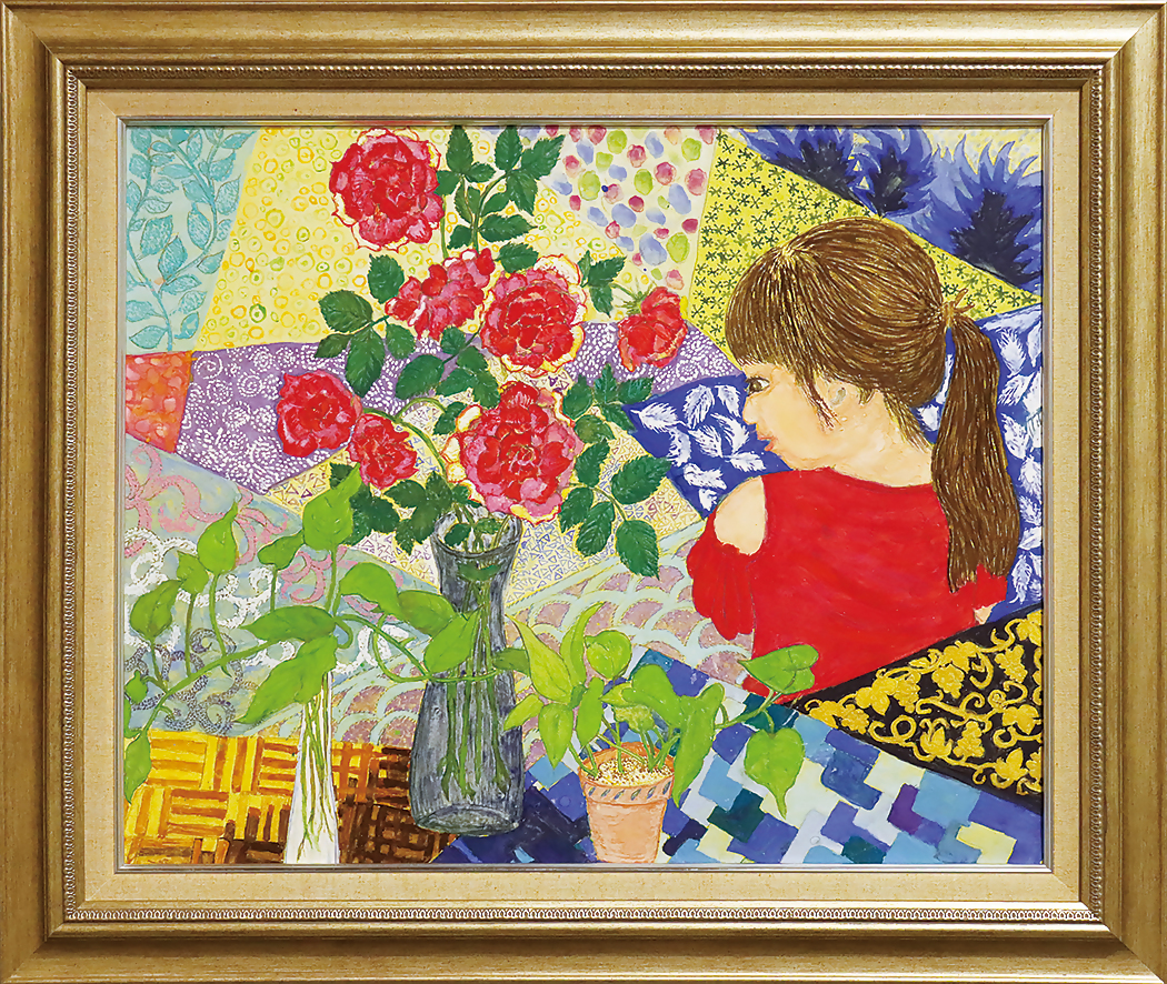 日本画「バラが咲いて・・・」 青木 絹美さん