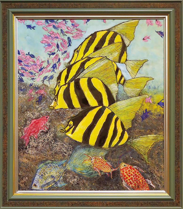 すばらしい躍動感、構図、マチエール。色彩感ともに優れた表現となりました。アイキャッチの黄色の小鳥がきいている。